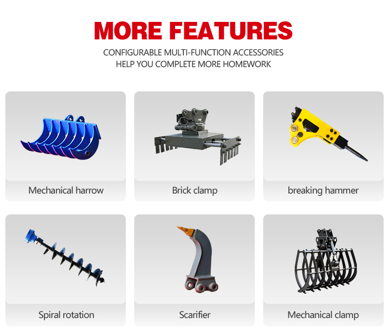 • small excavators 1.8T\2T\4T equipped with various agricultural tools